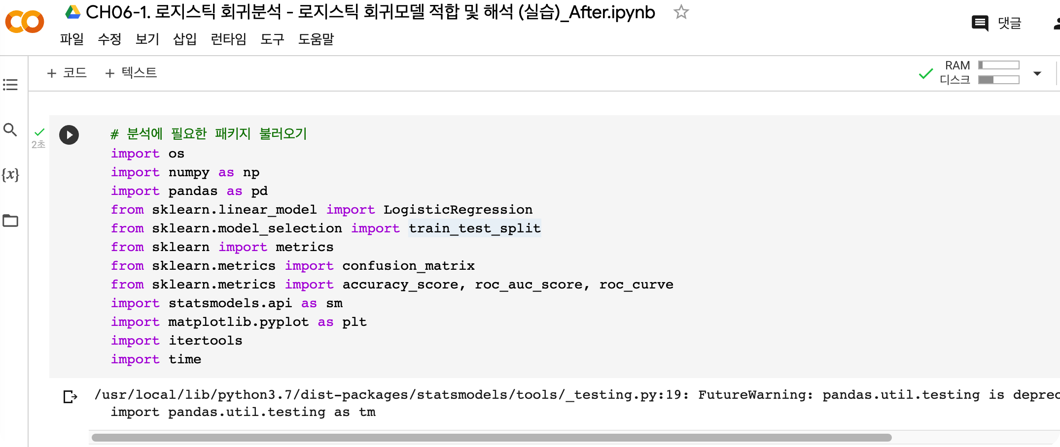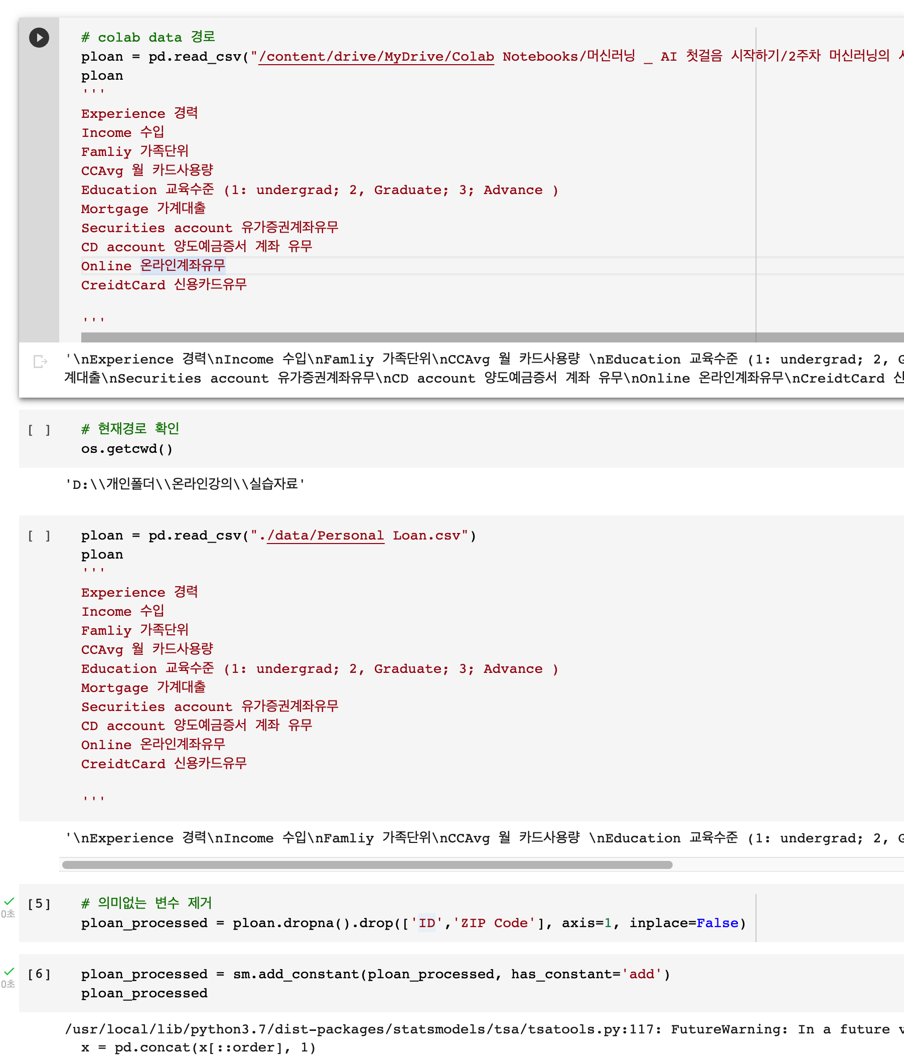 직장에서 시간이 날때와 집에서 코딩이 가능하도록 클라우드 환경이 필요해 구글에서 제공하는 colab에 파일을 올려서 간편하게 실습이 가능하도록 했다.